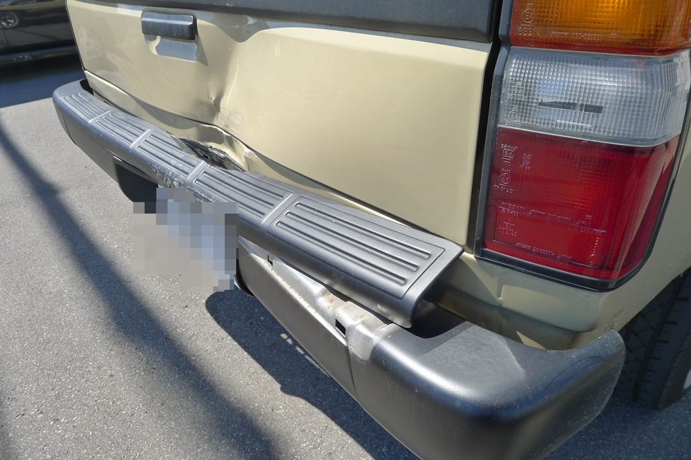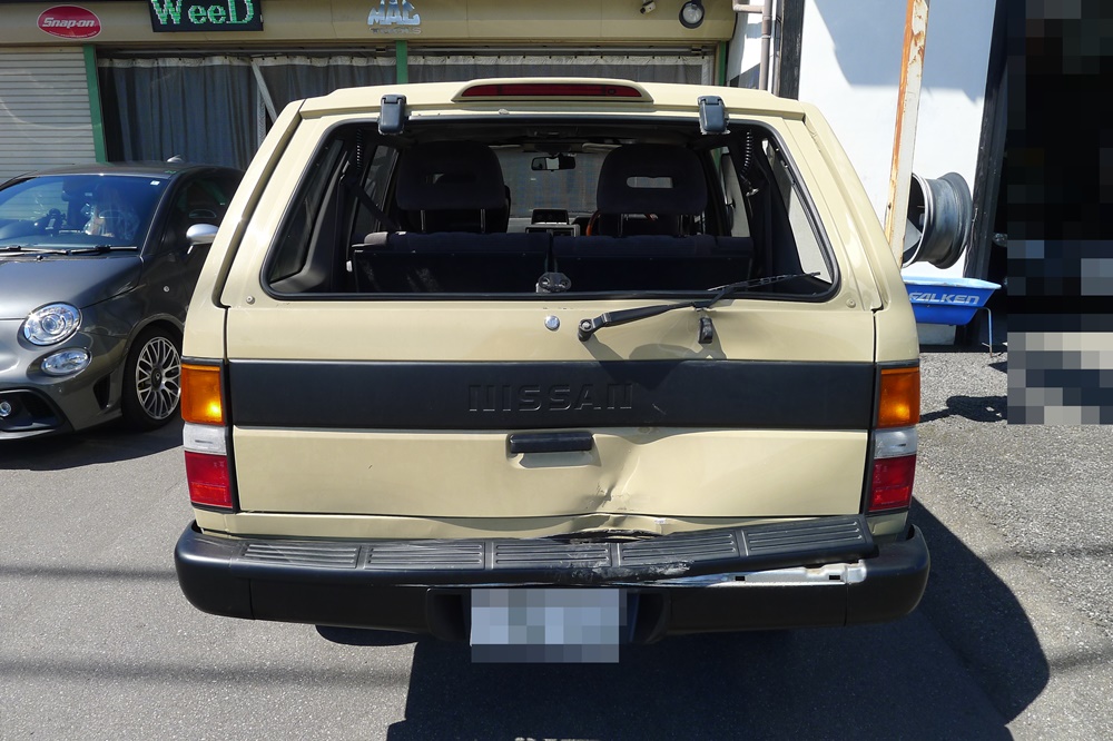 リアゲート、リアバンパー、リアフロア、リアガラスと損傷してしまっています