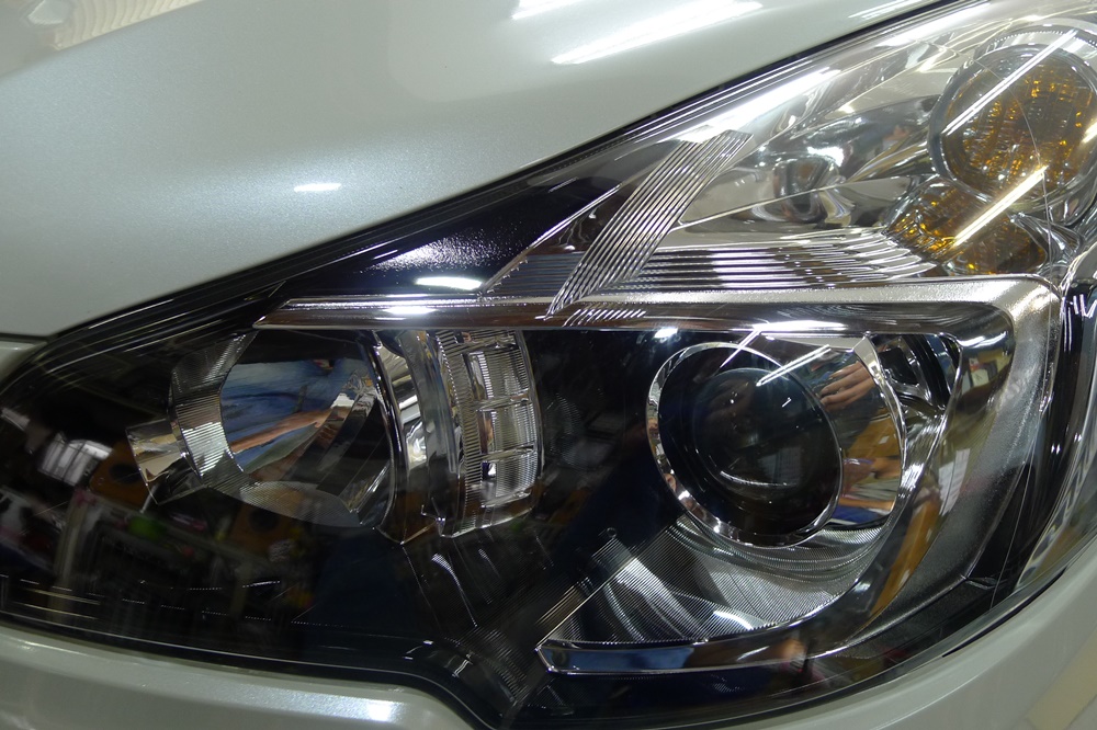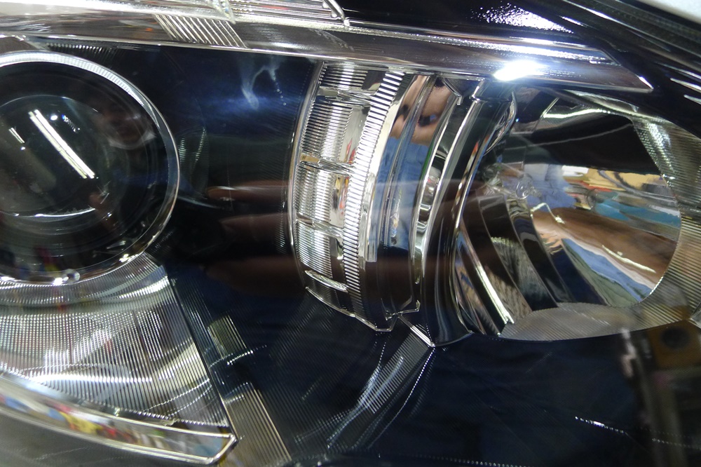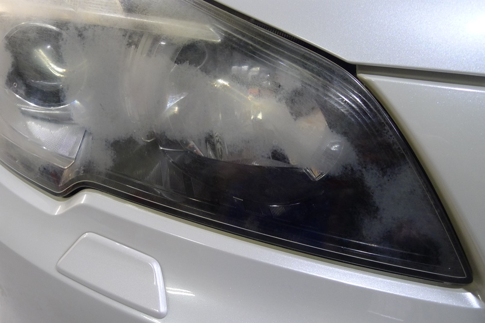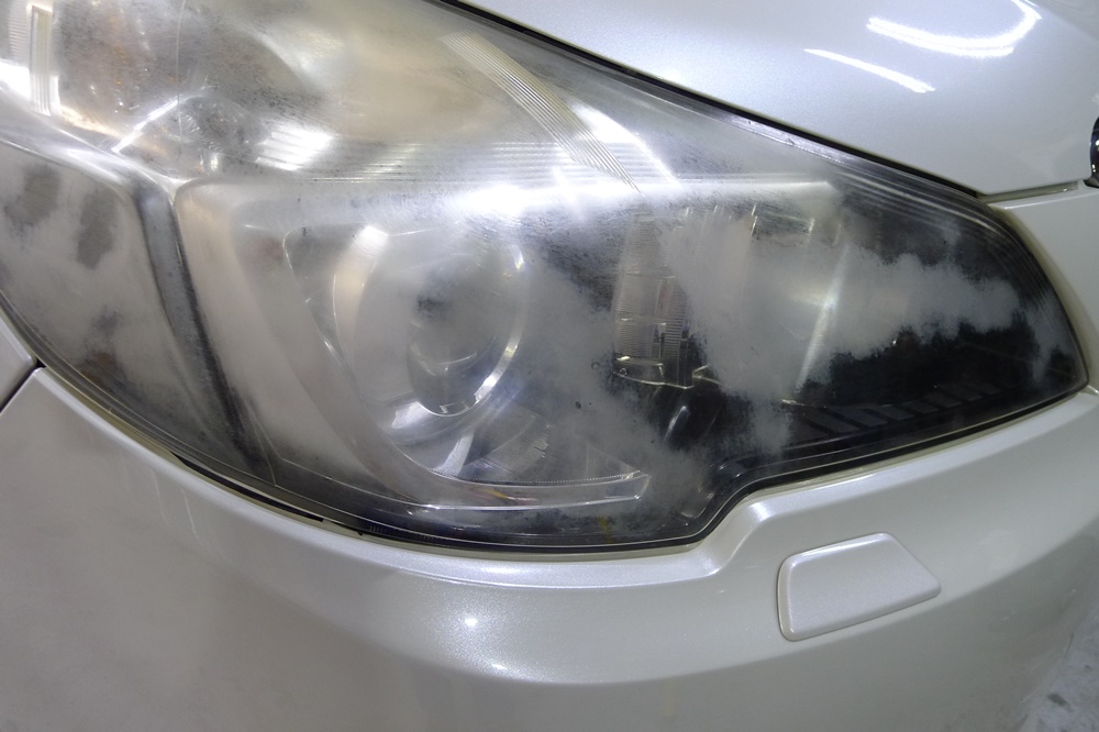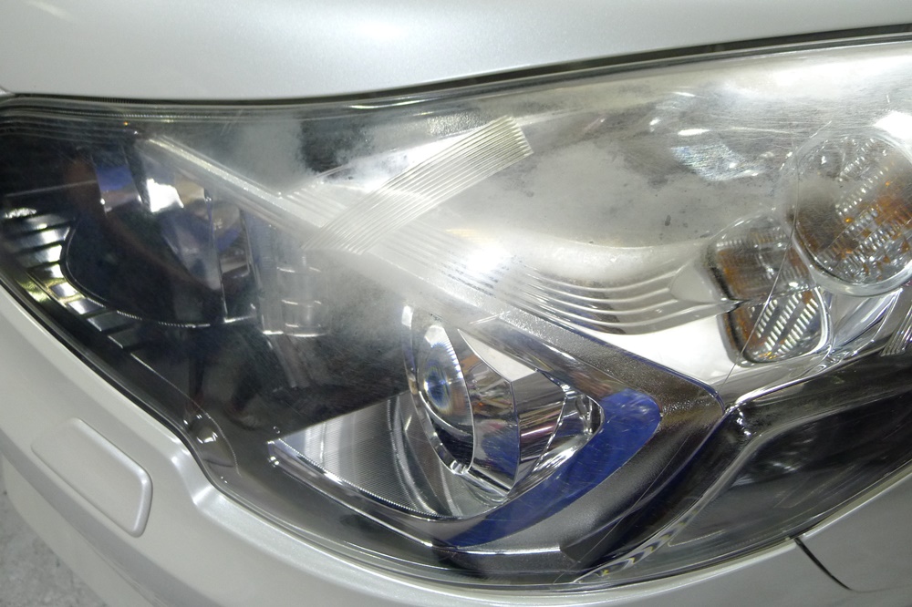 黄ばみやクスミが付いたまま車検に出すと光量不足になってしまい、ほとんどの整備工場、ディーラーなどではヘッドライトクリーナーなどで簡易的に落として光量を確保していますが、根源から除去をしていませんのですぐに元のクスミに戻ってしまいます。