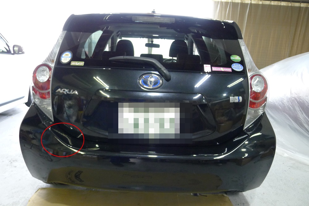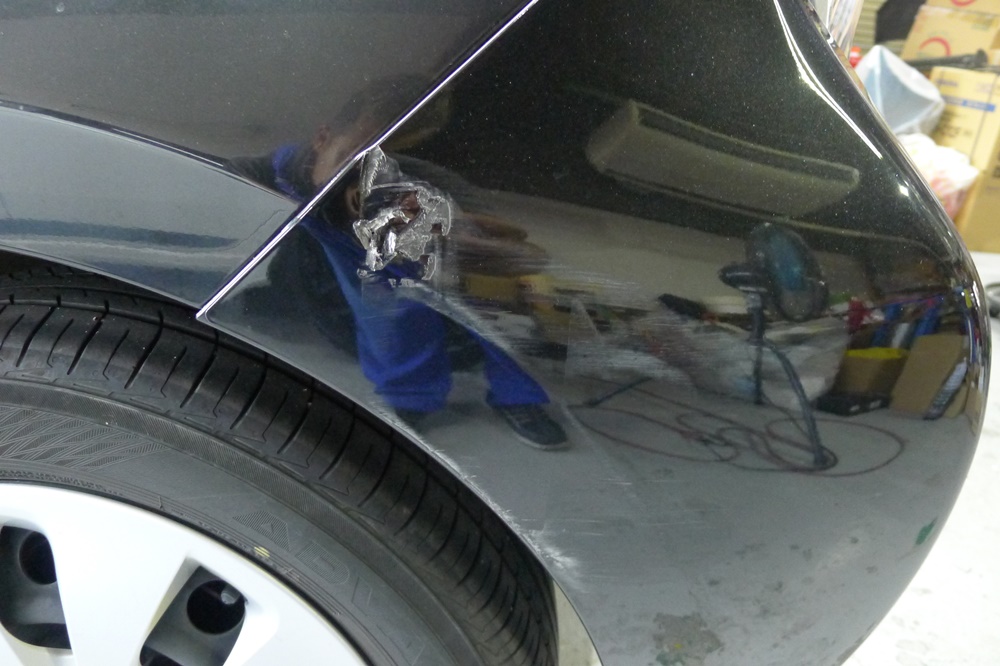 以前にもリアバンパーをぶつけて大きく凹んでしまいそのヘコミを応急処置させていただいた