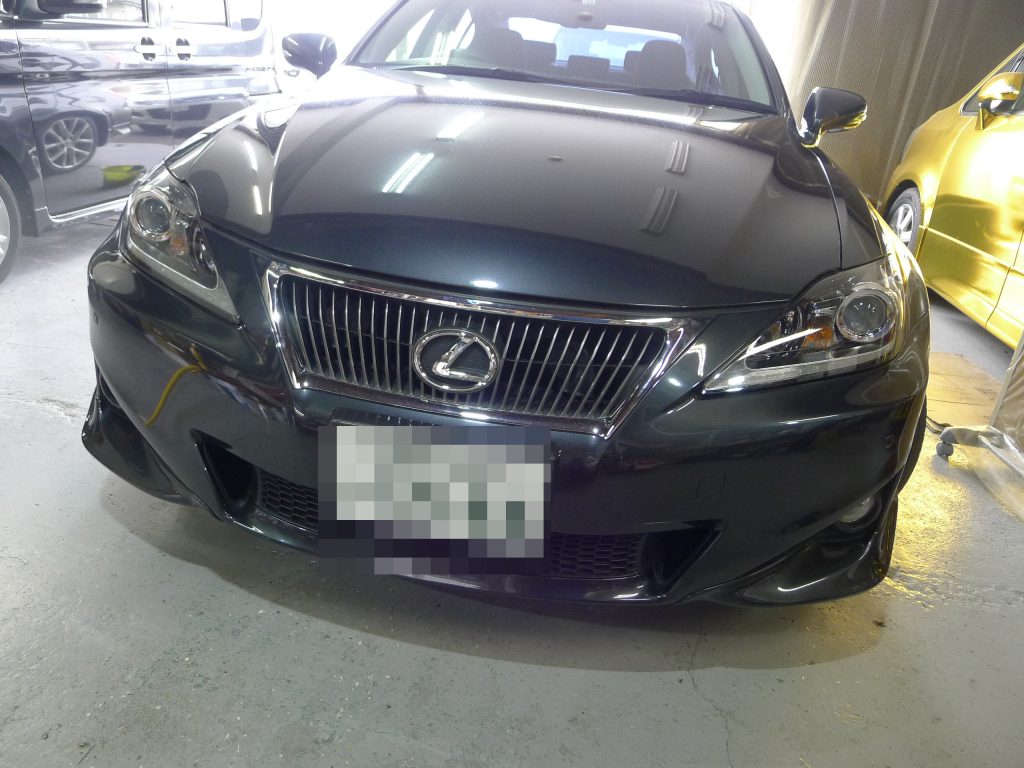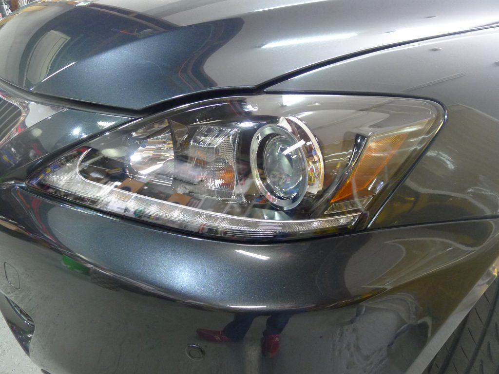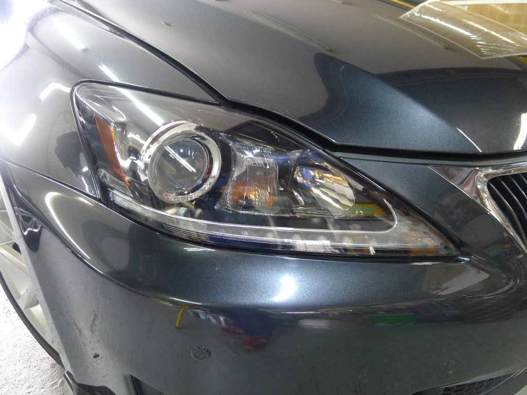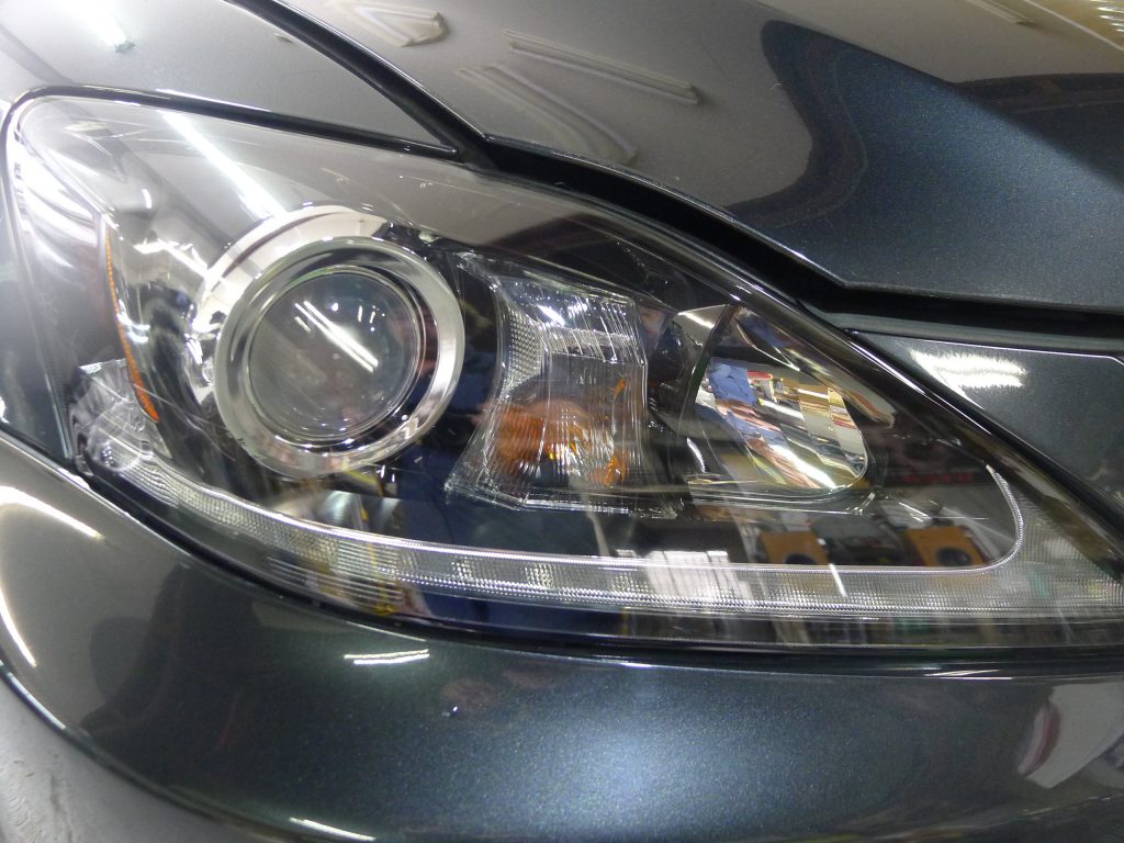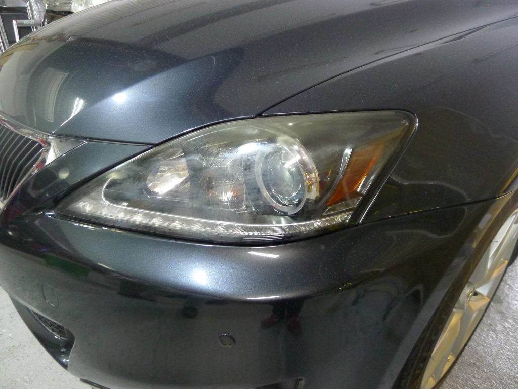 レクサス ISのヘッドライトの黄ばみ、クスミ除去施工です