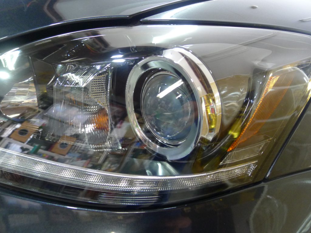 ヘッドライトの状況を見ながら最善の研磨作業を行いヘッドライト再生コーティングを施工後もう一層のコーティングを施工いたします