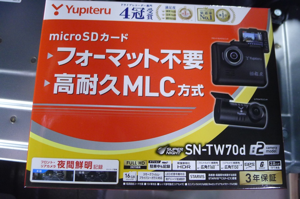 乾燥後、ユピテル指定店モデル、前後ドライブレコーダーSN-TW70d取付です