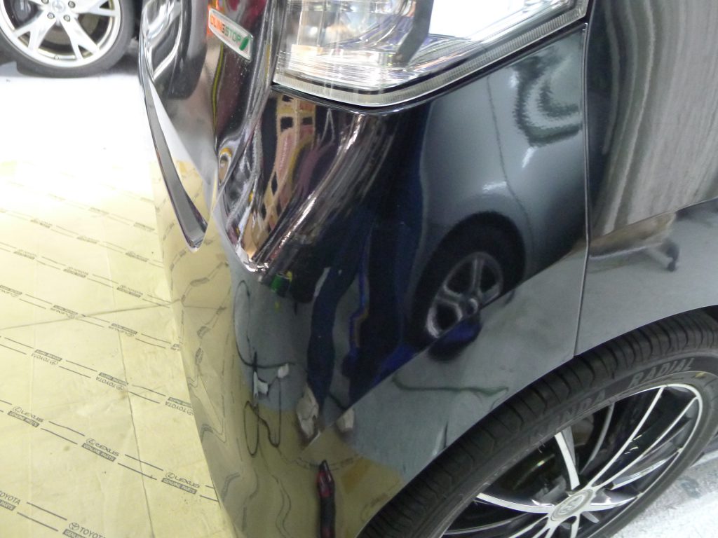 右テールランプ下が大きく凹んでしまっています