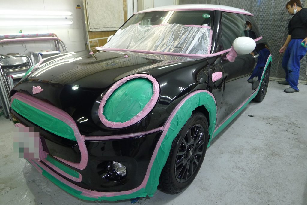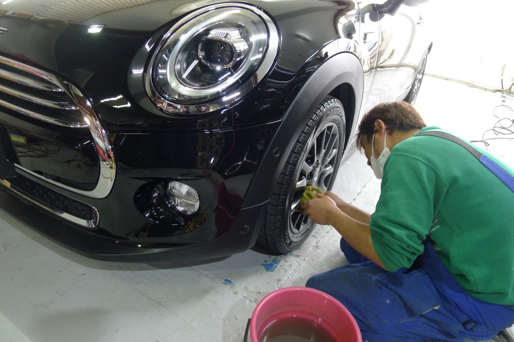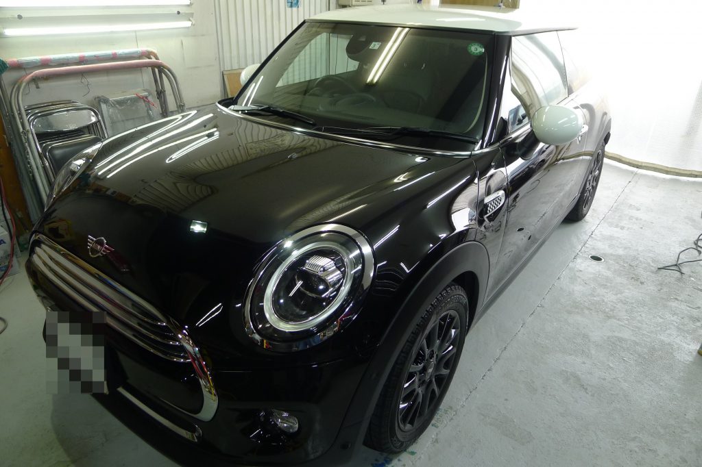 BMW ミニに被膜硬化のカーコーティング施工です