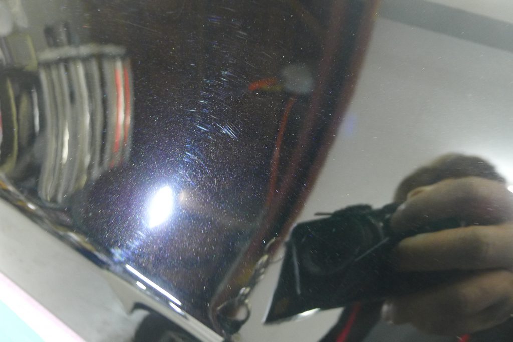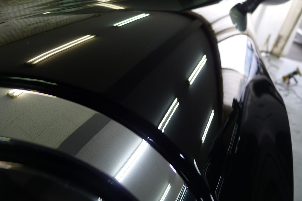 何らかの撥水剤が掛かっていましたのでしっかり脱脂処理を行い、下地作りのポリッシング作業に入っていきます