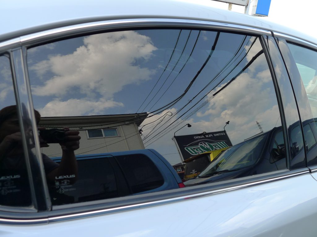 リアガラスにドライブレコーダー、TVフィルムアンテナが付いていますので剥がしてからの施工です