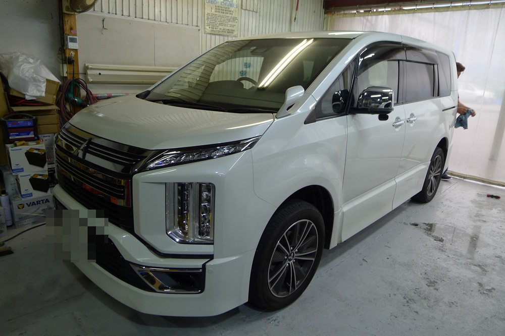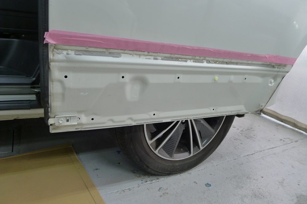 左リアスライドドアのパネル部分に傷が入ってしまったとのことで修理依頼です