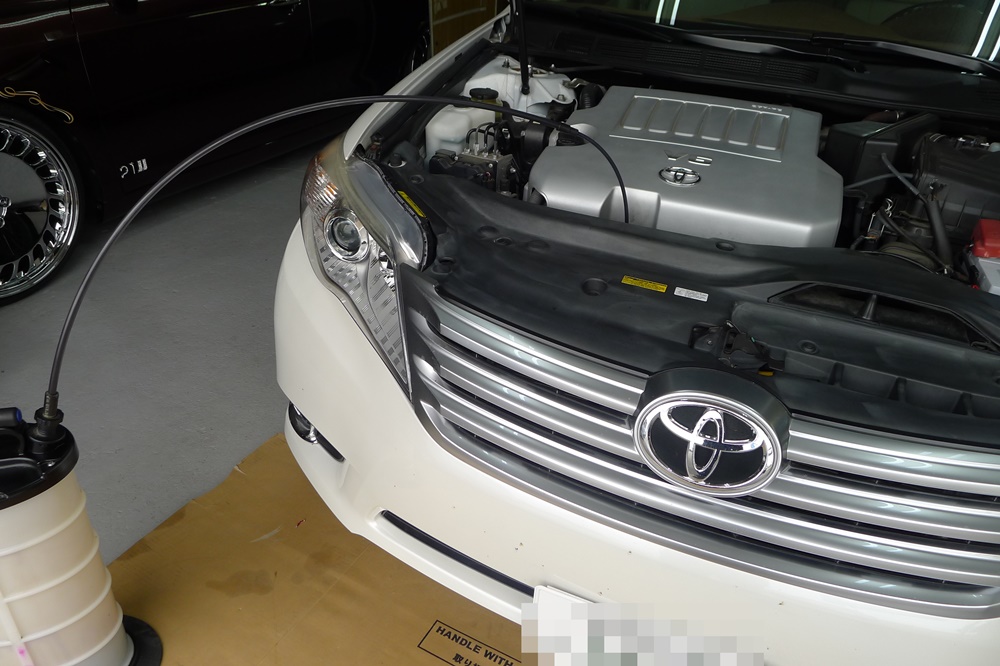 昔ながらの下抜き、ドレンボルトを外して抜いていますね。中にはドレンボルトを傷めてしまっているお車、パッキンを新調せずに再利用し、そこから滲んでしまっているお車も多く見受けられます