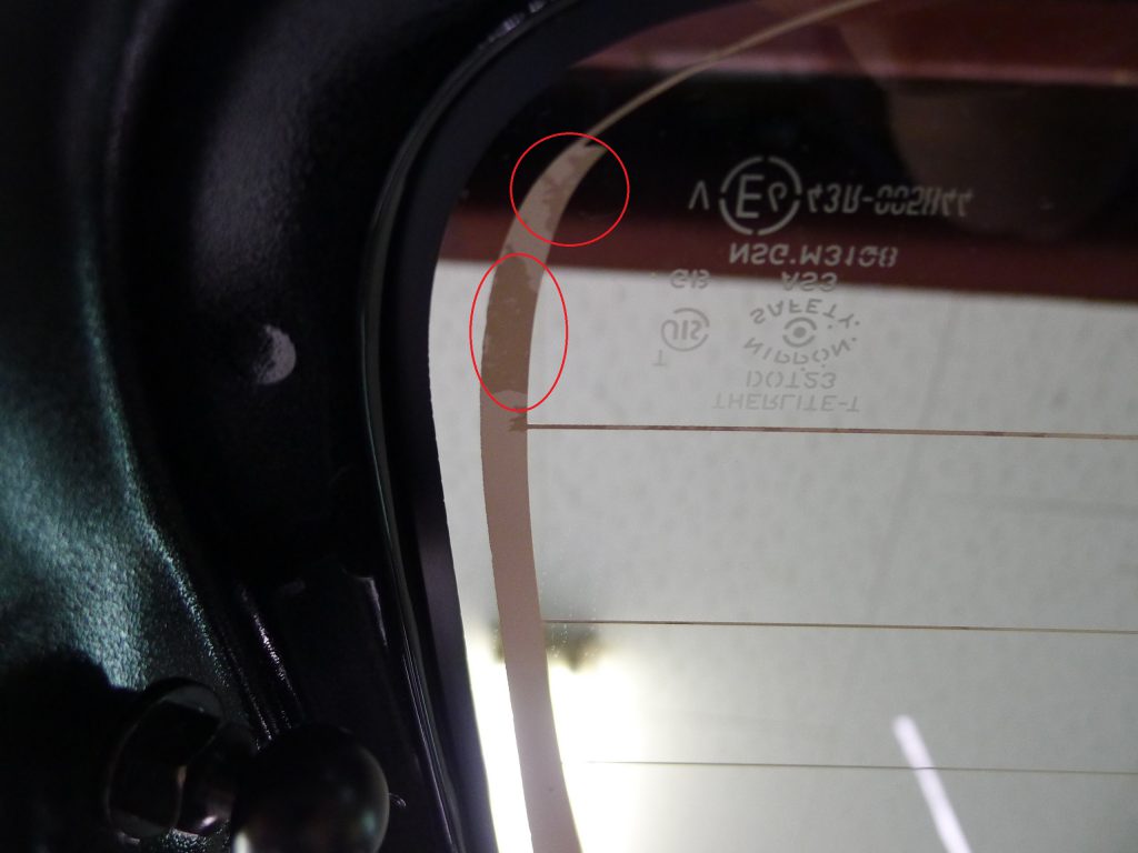貼って間もないそうですが市販のカーフィルムではこのように糊が残ってしまいます。貼ってから一週間も経てばもっと酷く糊が残ってしまいます