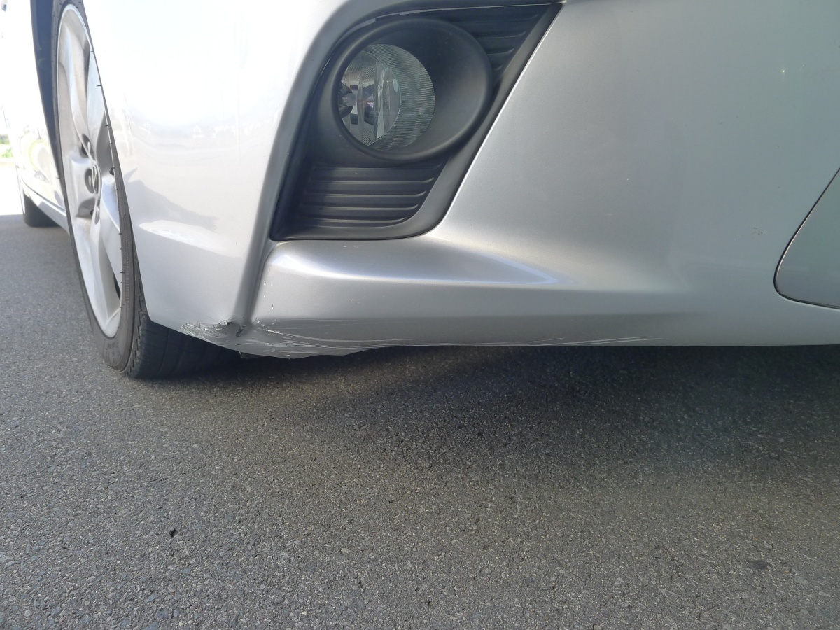 レクサスIS フロントバンパー右下の擦り傷とへこみ 修理前の状態