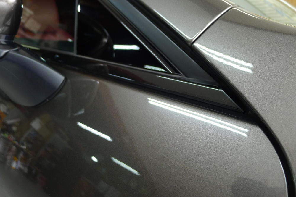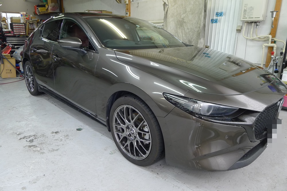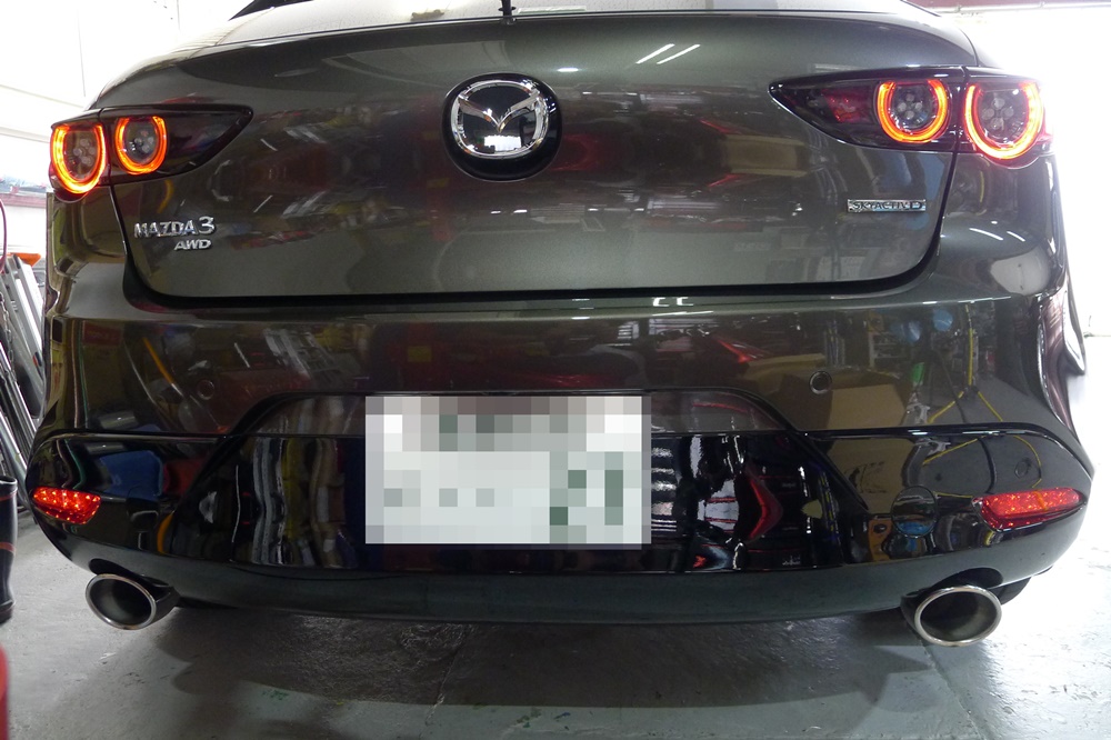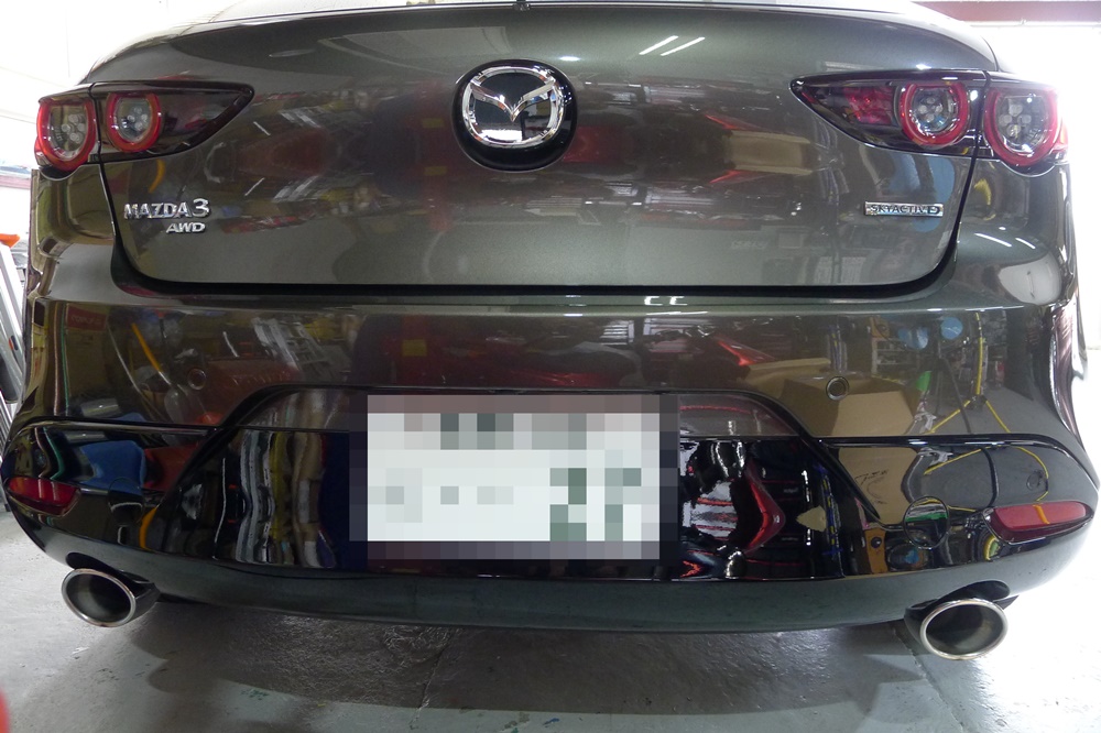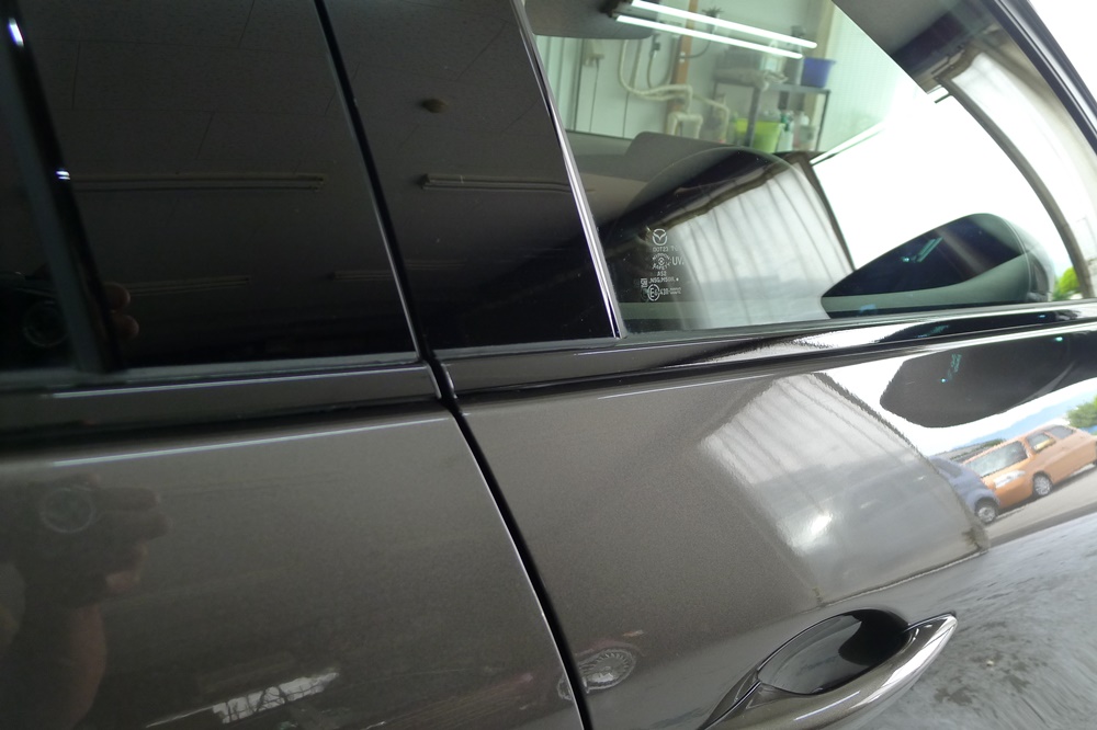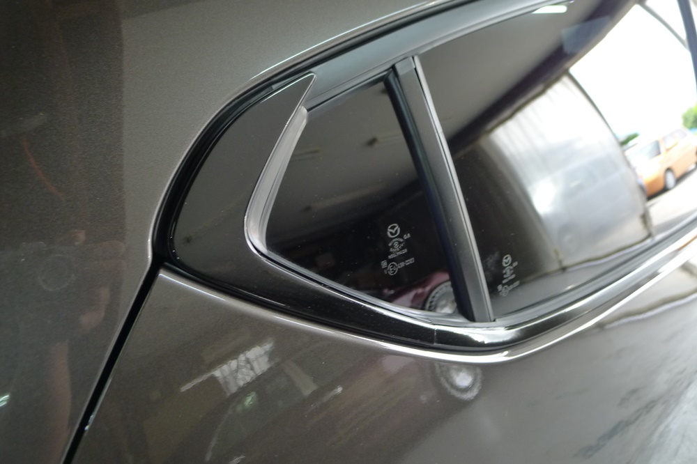 MAZDA3 ファストバックのドア淵のメッキモールをブラックアウト化です