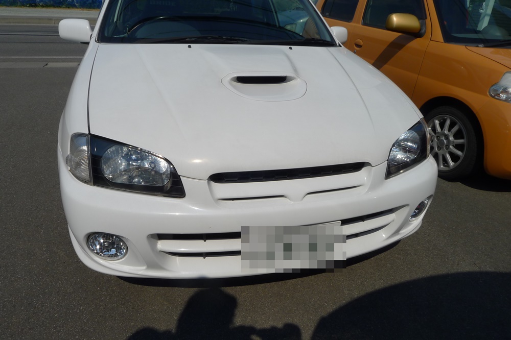 今となっては珍しいお車、トヨタ スターレットのヘッドライト再生コーティング依頼で入庫です