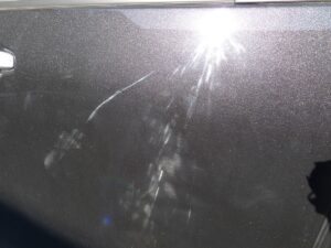 この上にコーティング剤、WAX洗車を行なうとキズは若干埋まってきますが艶引け、キズに埋まった油分が汚れを寄せ付けてしまいます