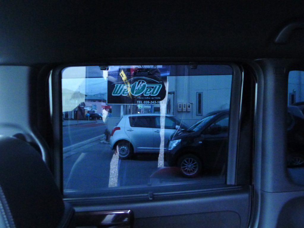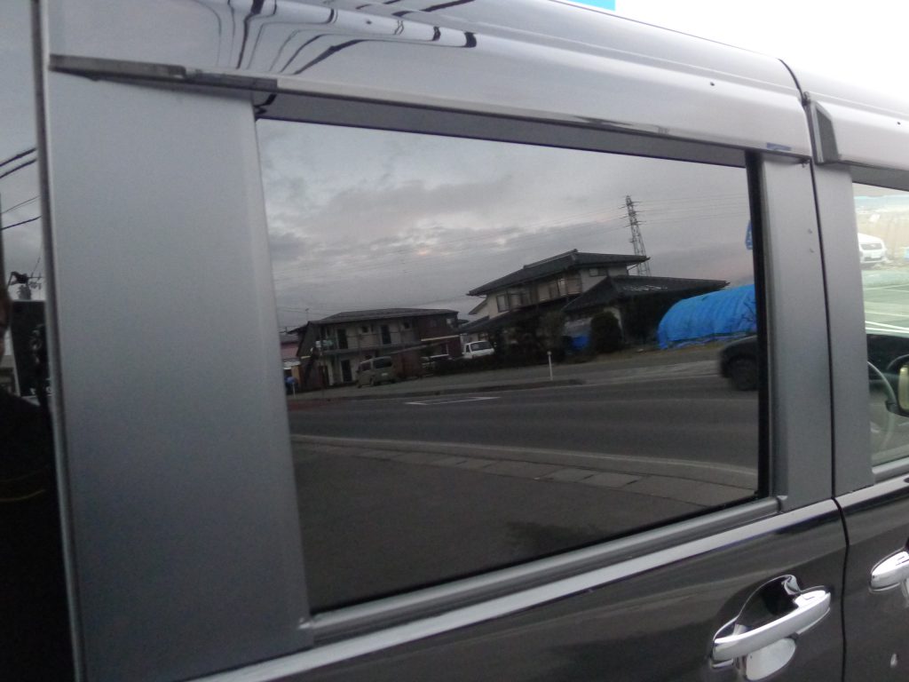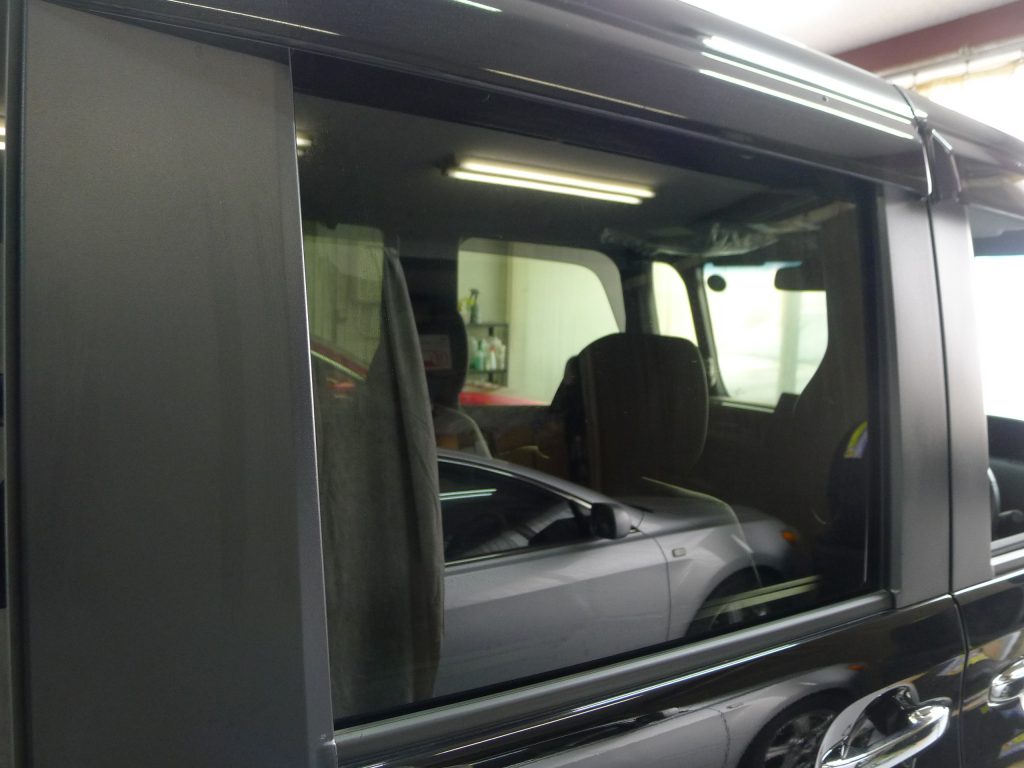 透け透けの色付き純正ガラスにカーフィルム施工でプライバシー保護、紫外線カット、飛散防止等の効果があります