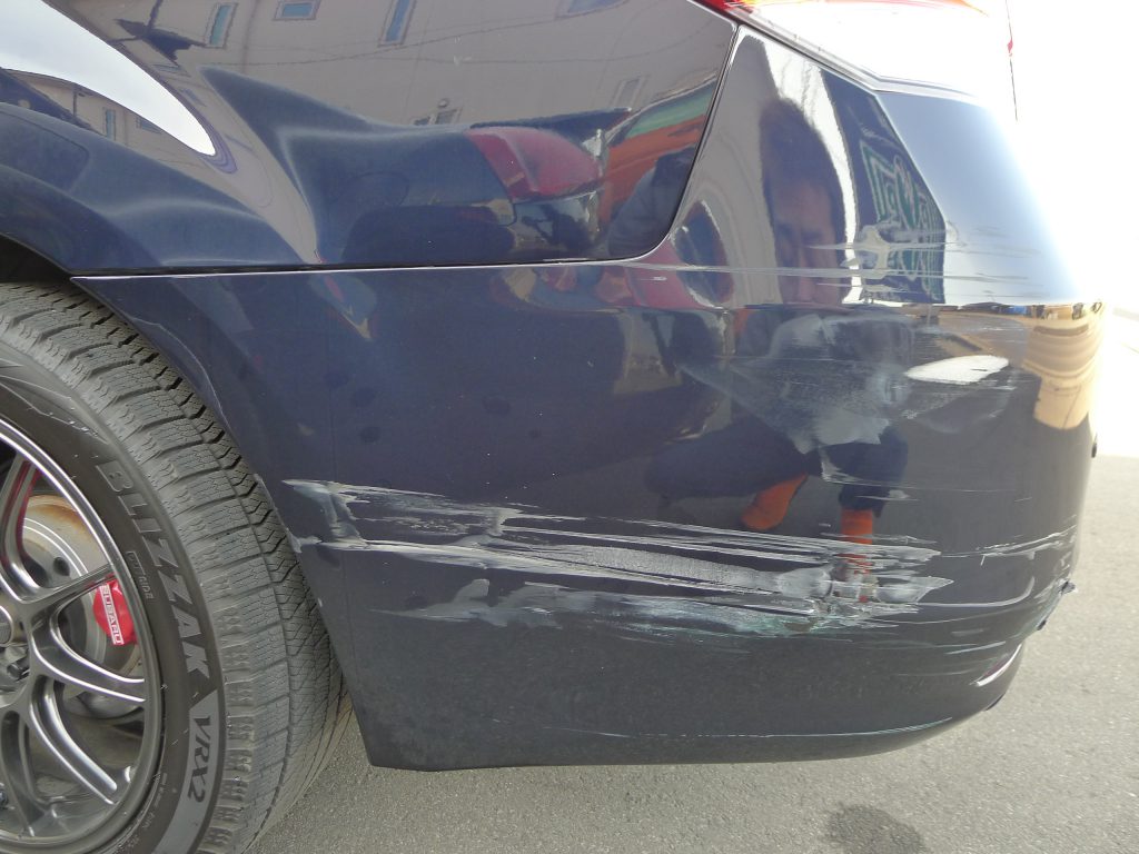 リアサイドをぶつけてしまったそうで修理依頼で入庫です