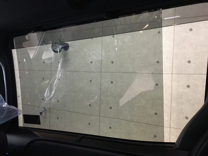 通常フィルムで施工した場合はこのセラミックドット部分がうまく貼れず、白く濁って見えたり室内からはマダラになってしまいます