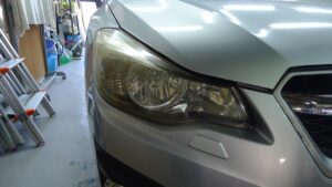 今回のインプレッサも上部にクラックがありますが当店のヘッドライト再生コーティング施工で