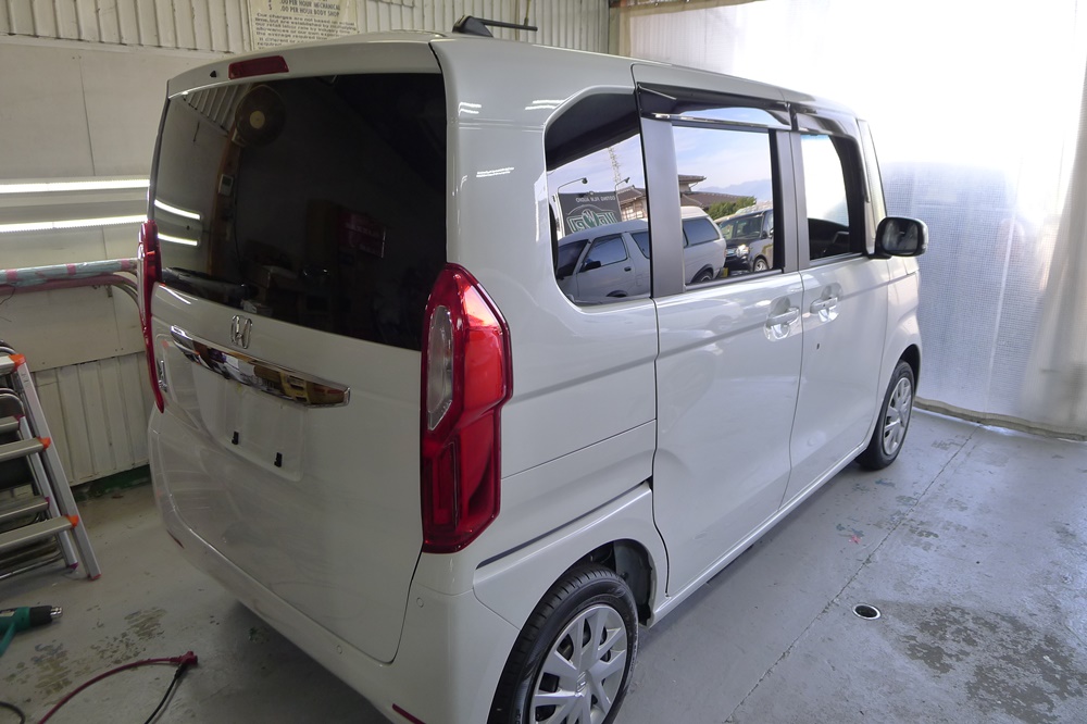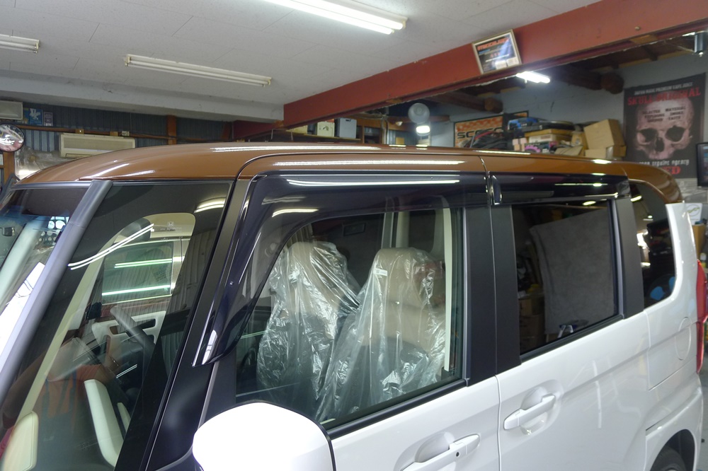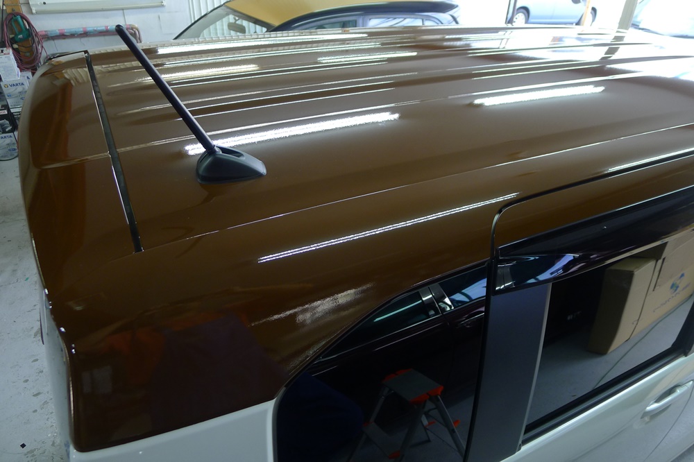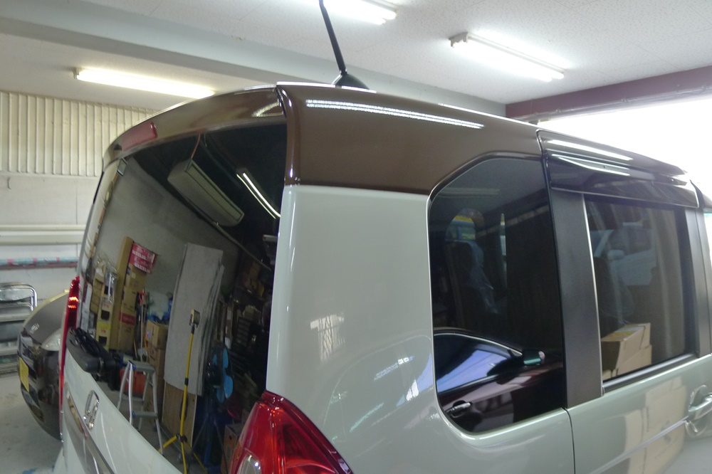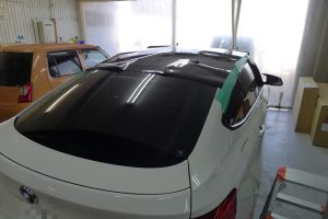 ウインドウのカーフィルム施工をまず施工し、ルーフラッピング施工に入ります