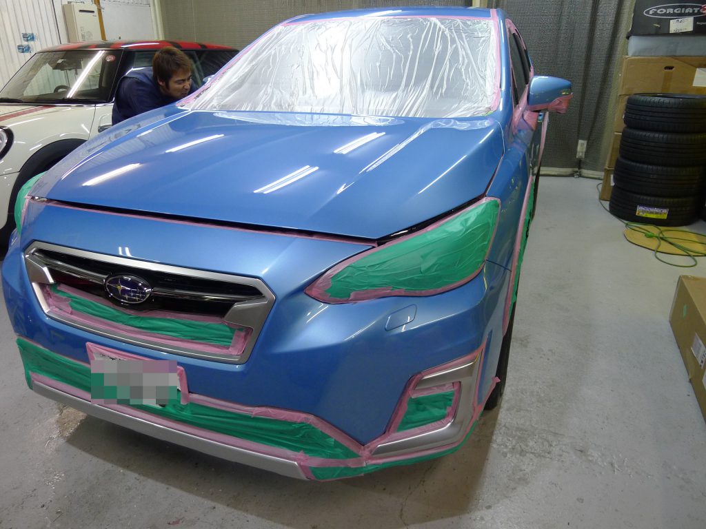 しっかりマスキングしてポリッシング作業時に不要な部分を保護していきます