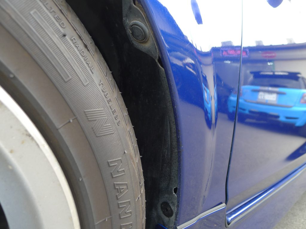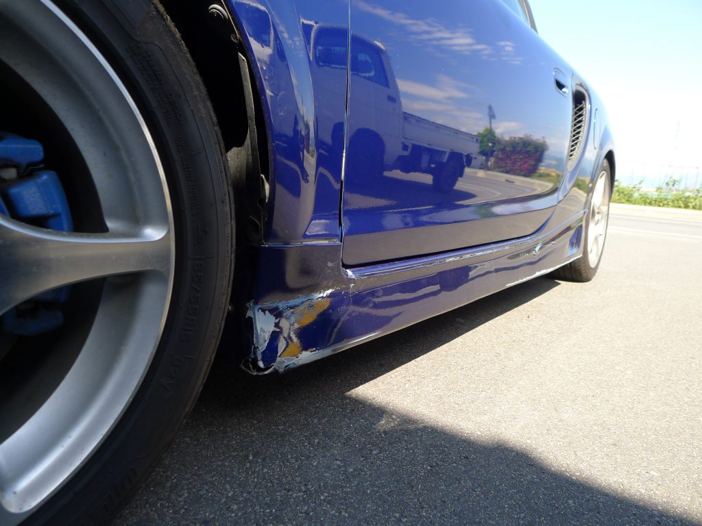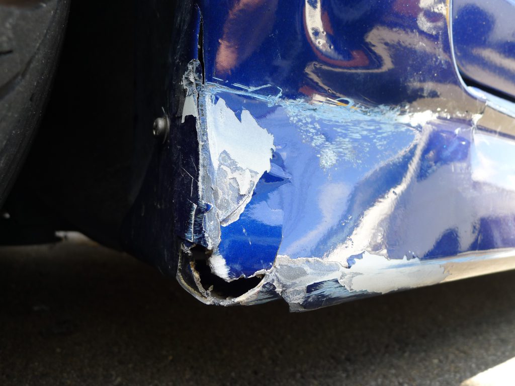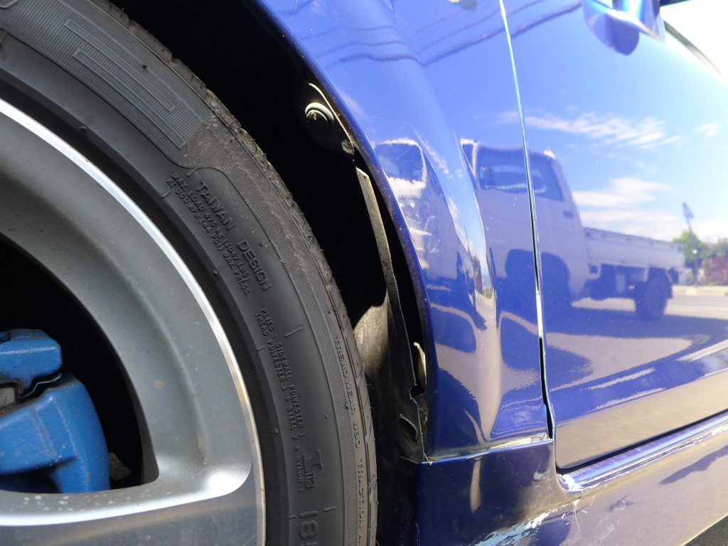 サイドステップをぶつけた影響でフロントフェンダーも変形してしまっています