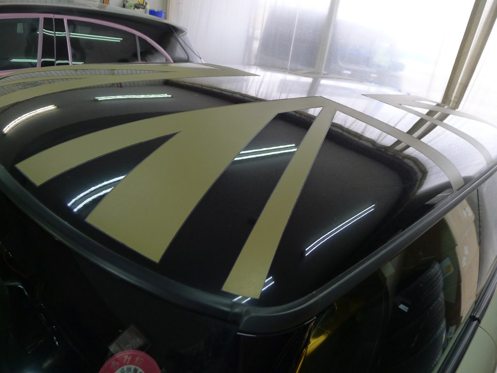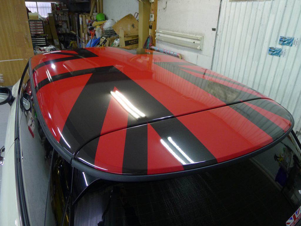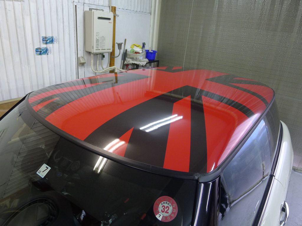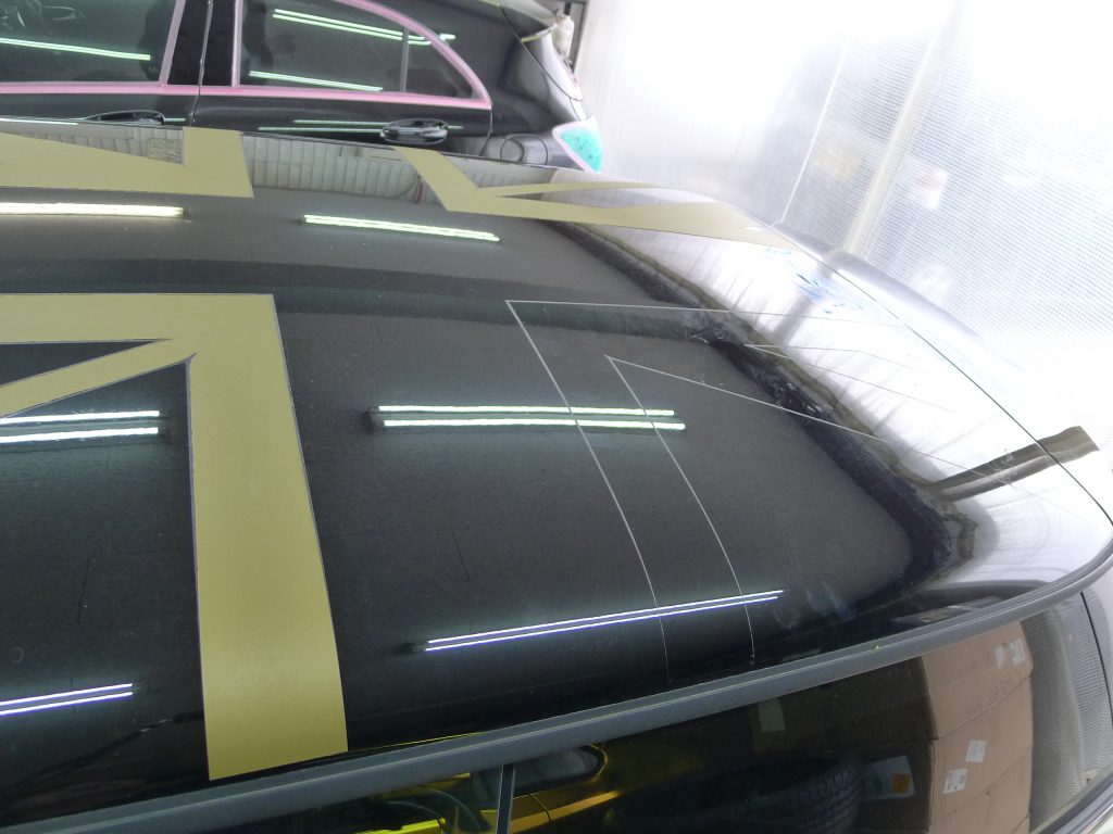 まずはルーフに貼られている劣化したユニオンジャックの剥がしからです