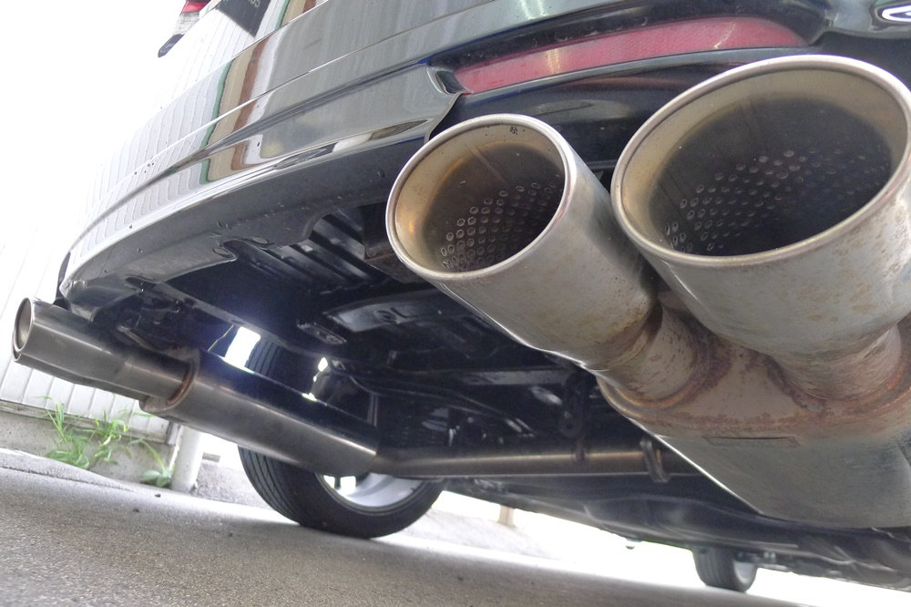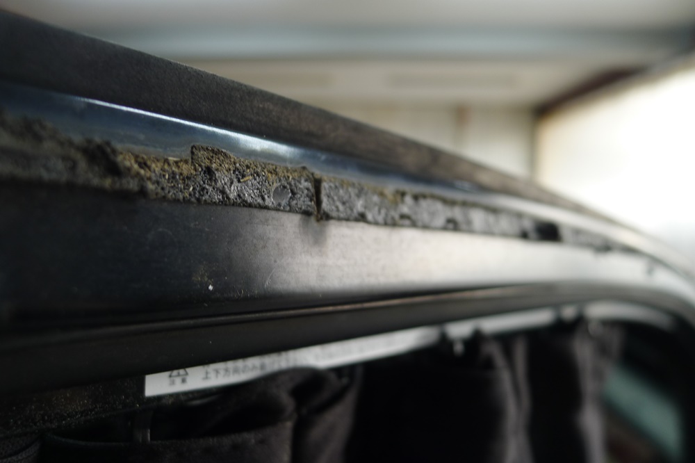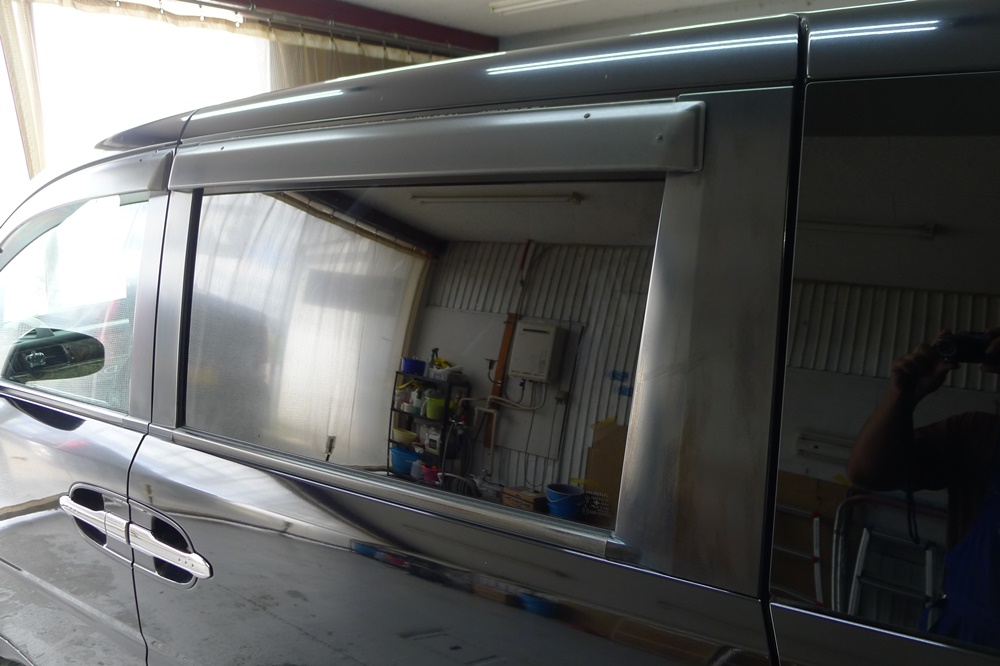 経年劣化によりくすんでしまったサンバイザーの交換、ピラーのメッキ施工です