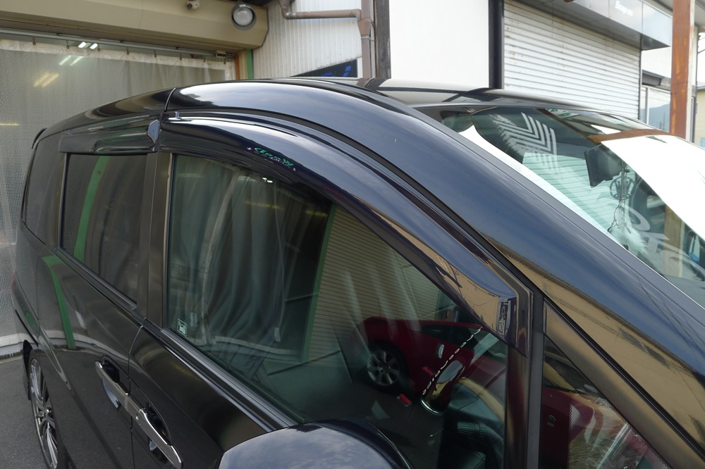 素材を傷めずに奇麗に除去、ピラー部も汚れ等の除去をしお持ちいただいたバイザーとステッカータイプのピラーを施工です