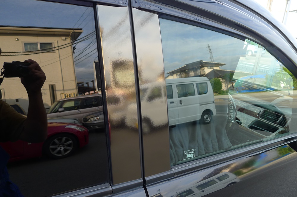 ステッカータイプのメッキピラーも寸法が合わず現車合わせで施工いたしました