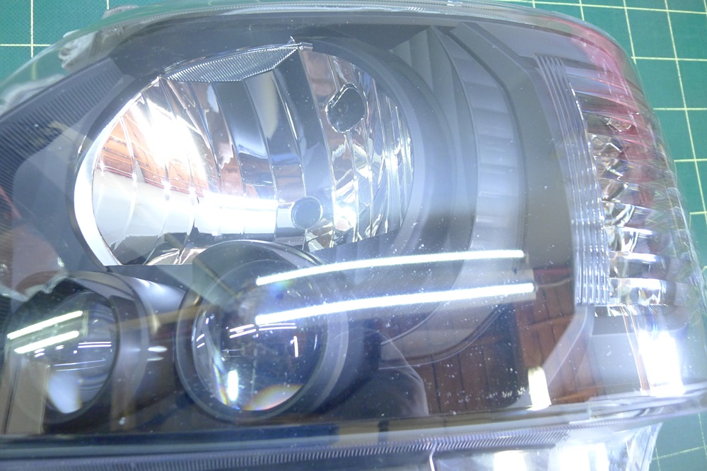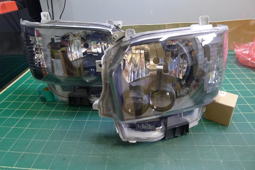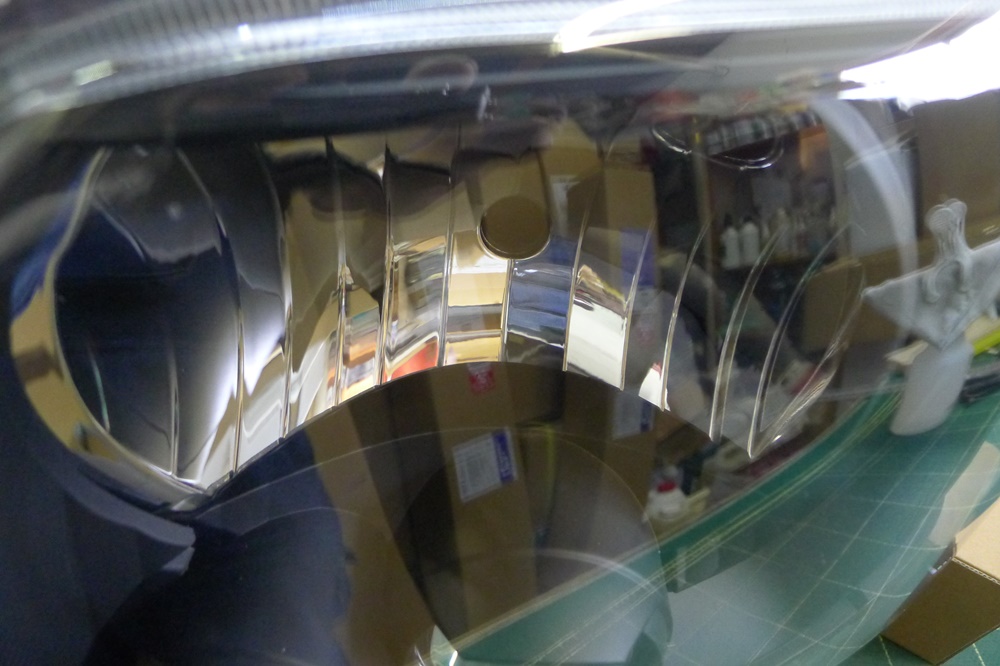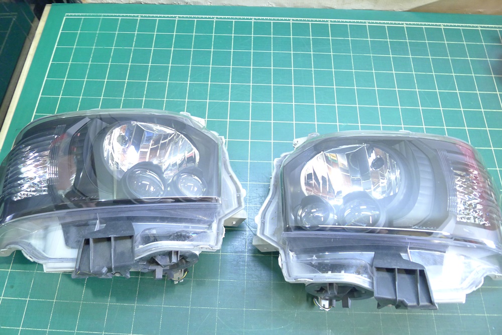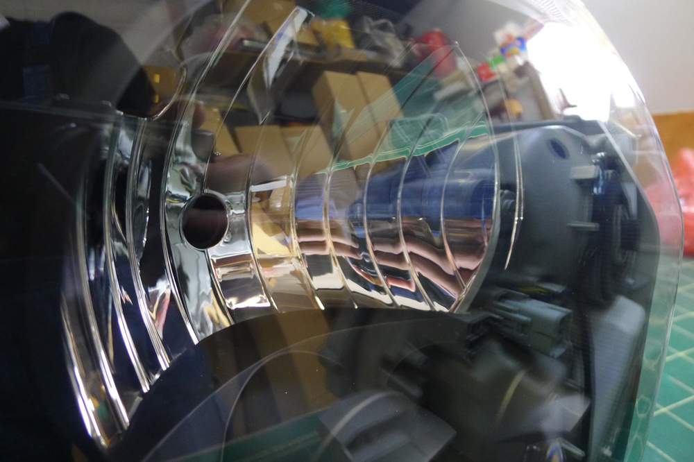 当店人気メニューのヘッドライト再生コーティング施工で更に保護のため透明プロテクションフィルムです