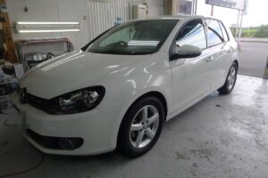 車輌乗り換えでフォルクスワーゲン ゴルフⅥを購入いただきました車両に下廻り防錆クリアコーティング、被膜硬化ボディーコティング、前車から取り外したナビの取付、バックカメラの取付です