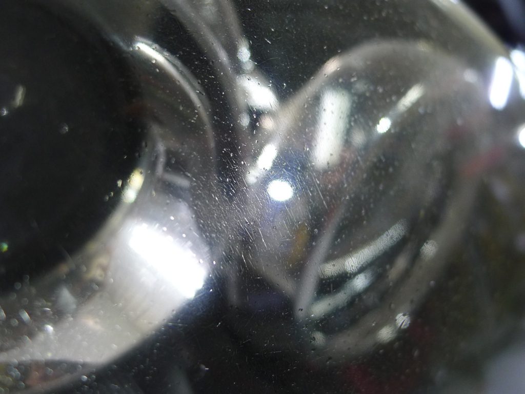 黄ばみ取りクリーナーでレンズが侵されてしまっています。クリーナーは表面の黄ばみを溶かして落とす、溶かすということは・・・
