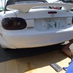 リアのハーフスポイラーの加工、塗装取付依頼のマツダ ロードスター 仮合わせのためリアサイドスポイラーを外して センター位置出し純正マフラーからセンター2本出しマフラーにするため開口部の加工からです 仮止めしていったんお返 […]