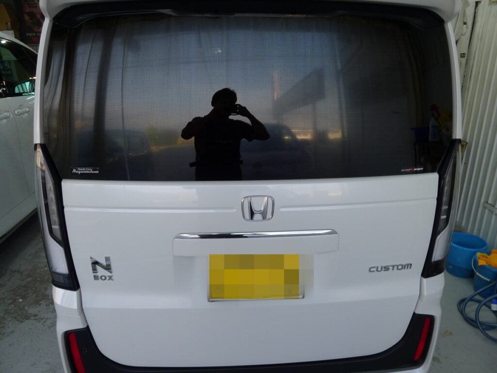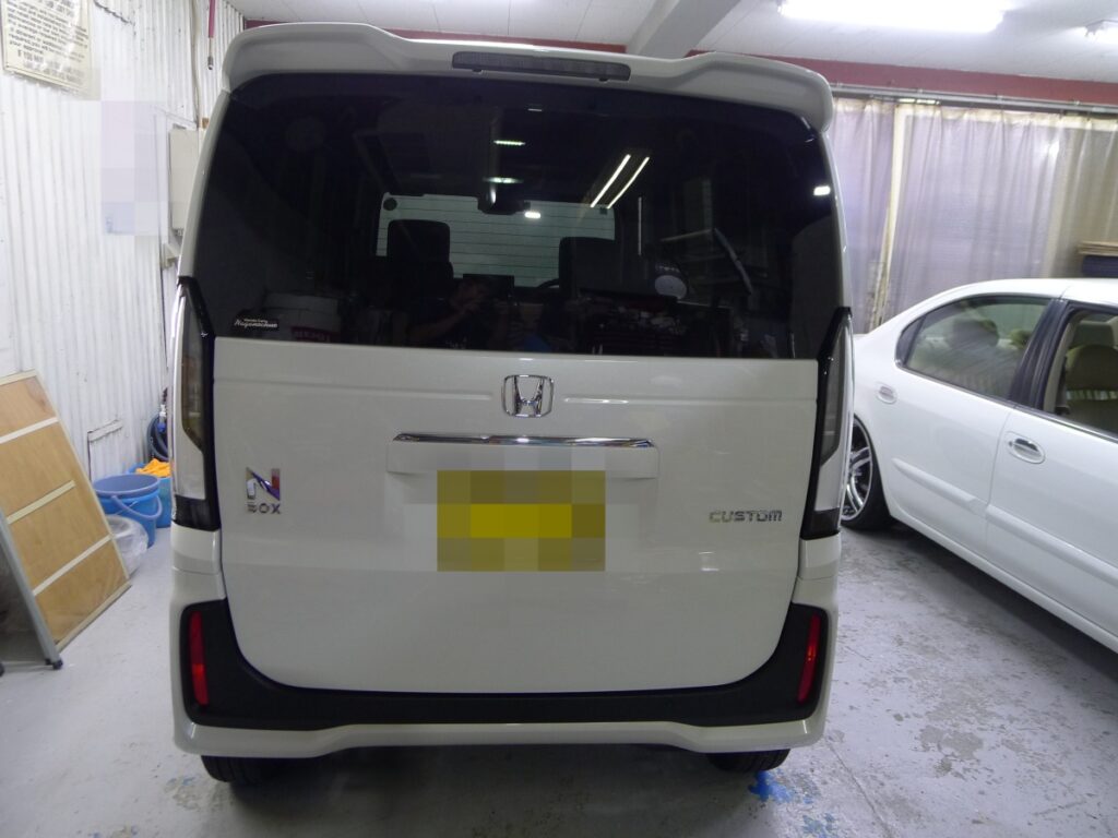 ホンダN-BOXカスタムのリア5面にスモークタイプを施工。