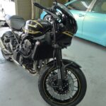 バイクのコーティング施工依頼で入庫のKAWASAKI Z900RS 当店人気の被膜硬化型コーティング施工ですオプションのホイールコーティングなども同時施工です しっかり汚れなどを落としポリッシング作業からですポリッシング […]