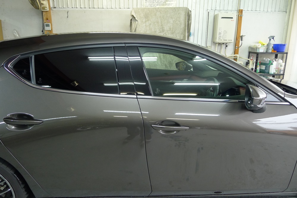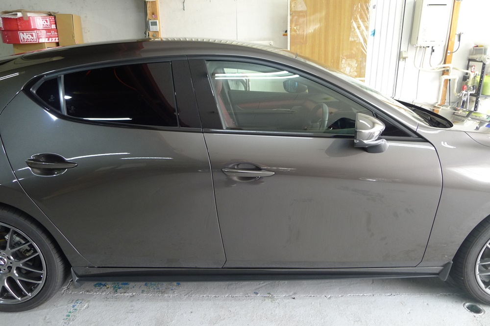 MAZDA3 ファストバックのドア淵のメッキモールをブラックアウト化です